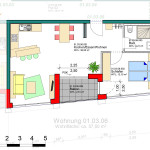 Alle bodentiefen Fensterelemente zu Terrassen und Balkonen sind mit Raffstore (horizontale Lamellen) und elektrischem Antrieb ausgestattet. Die Duschen sind bodengleich gefliest und im Bad ist zusätzlich ein Handtuchheizkörper vorgesehen. Für ein angenehmes Raumklima sorgt der stetige Austausch von Abluft und Frischluft.